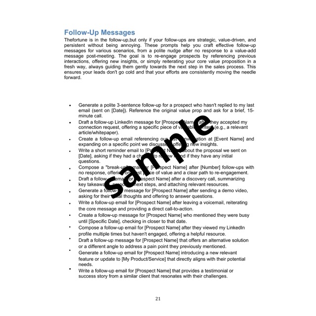 Follow-Up Messages: Strategic, value-driven follow-ups that keep the conversation alive without being annoying.
