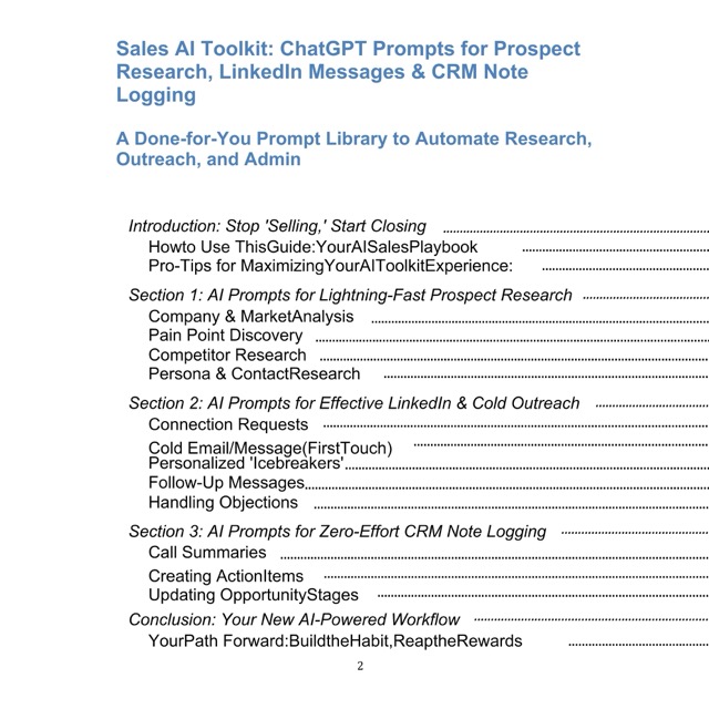 Sales AI Toolkit: ChatGPT Prompts for Sales Teams | AI Prospecting, LinkedIn Outreach & CRM Logging | Instant Digital Download SDRs AEsSales AI Toolkit: ChatGPT Prompts for Sales Teams | AI Prospecting, LinkedIn Outreach & CRM Logging | Instant Digital Download SDRs AEs