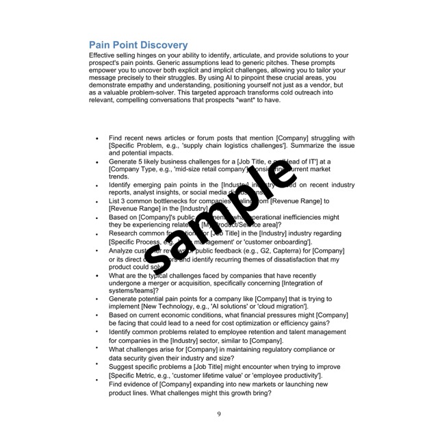 Pain Point Discovery: Uncover the real challenges your prospects face so you can position yourself as a problem-solver.